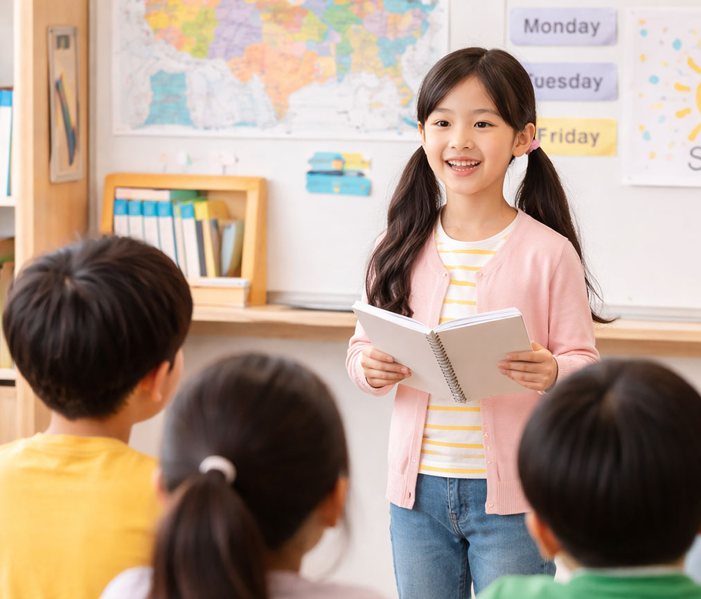 In English Program, your child builds confidence in communication through creative writing, storytelling, and public speaking activities that encourage clear expression and bold thinking.